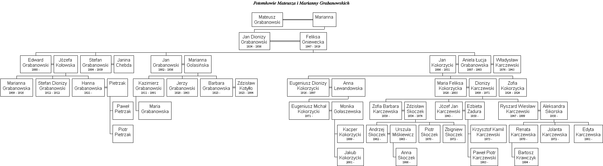 Małżeństwo, którego nie potrafimy powiązać z żadną z lubranieckich gałęzi. Wiekszość informacji na temat drzew lubranieckich pochodzi z akt metrykalnych archiwum Państwowego i Diecezjalnego we Włocławku oraz Urzędu Stanu Cywilnego w Lubrańcu. | 4900-4999 |