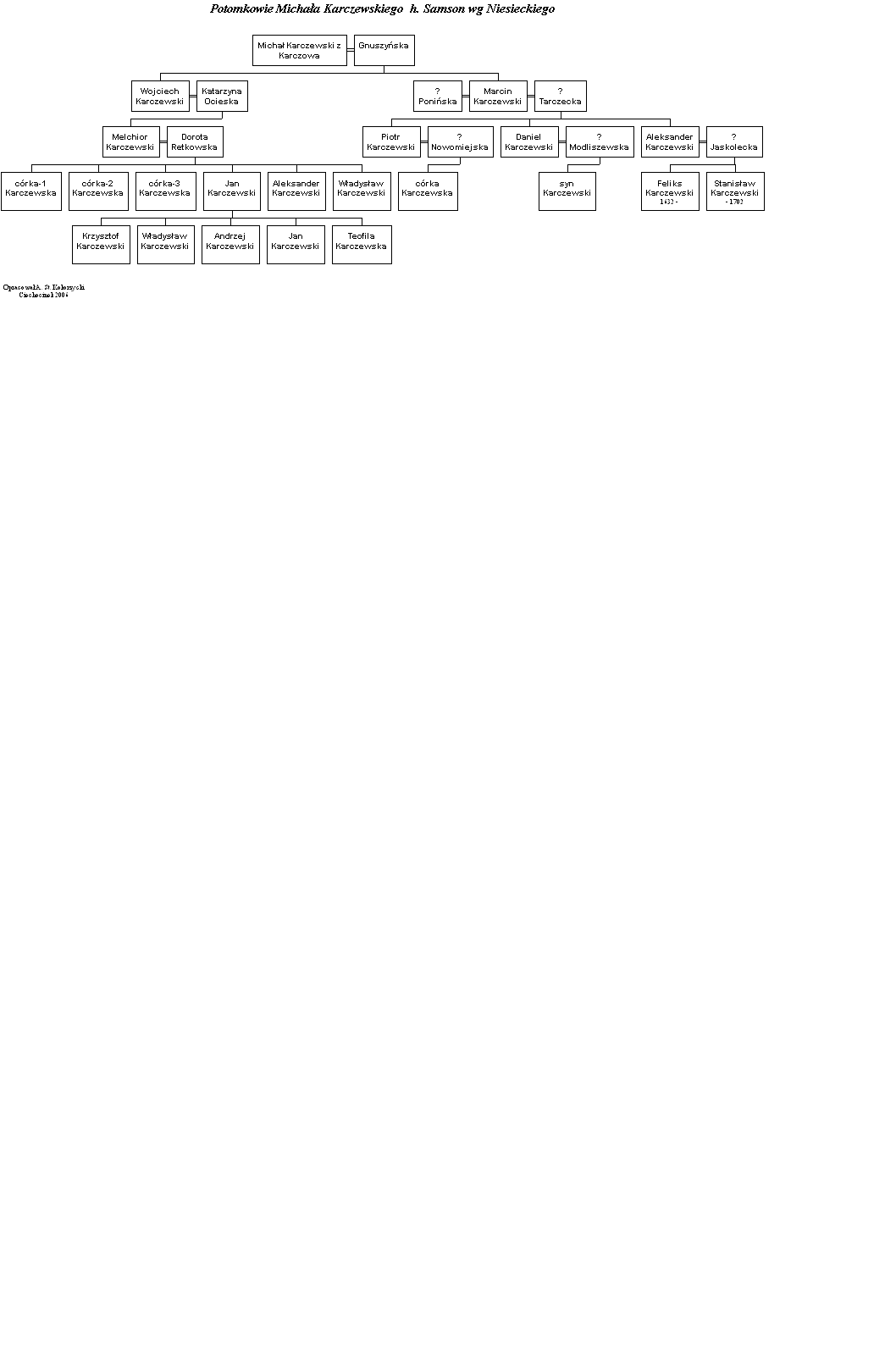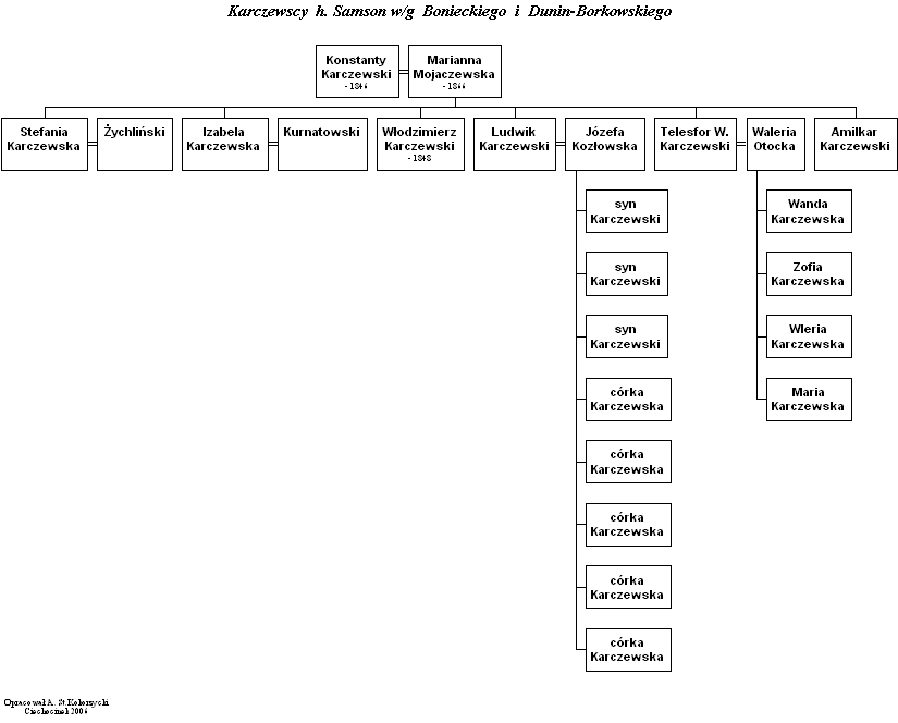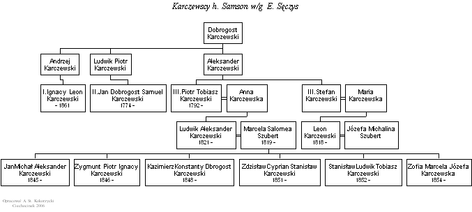 Gałęzie lubranieckie stanowią drugą, wielką rodzinę Kokorzyckich, posiadającą swoje korzenie w miejscowości Lubraniec, koło Włocławka. Lubraniec 1 (podobnie jak miało to miejsce w przypadku Dobrowa) jest jednyną gałęzią posiadającą swoich współczesnych przedstawicieli. Kokorzyccy lubranieccy mieszkają obecnie między innymi w miastach: Ciechocinek, Toruń, Łęczyca, Częstochowa, Warszawa. Przy okazji badań genealogicznych, zbudowaliśmy także kilkudziesięcio osobowe drzewko rodziny Karczewskich (które aż w trzech miejscach powiązane jest z gałęzią lubraniecką) oraz Grabanowskich, Glonków i Dorendów. Dodatkowo utworzone zostały drzewa Karczewskich h. Jasieńczyk wg. Bonieckiego oraz Karczewskich h. Samson wg. Bonieckiego i Dunin-Borkowskiego, wg Niesieckiego i wg. Sęczysa. | 4000-4499 |